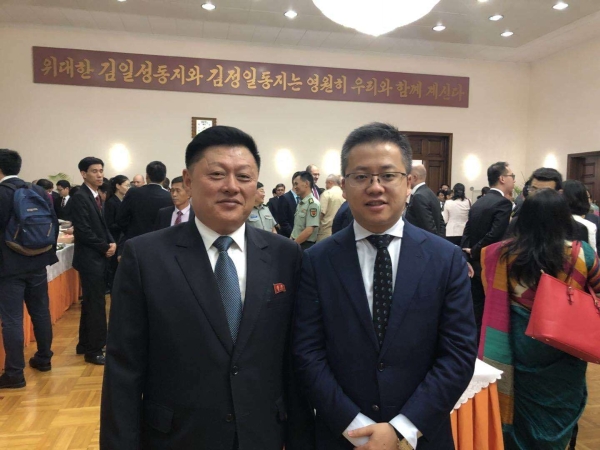 王帆参会并与朝鲜驻中国大使馆公使衔参赞金京永合影