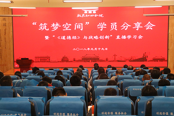 会上,全体与会人员共同学习致良知四合院创始人白立新老师的直播课程“《道德经》与战略创新”,共同探寻古圣先贤文化之无穷奥秘。生逢伟大的时代,有机会牵手圣贤,我们何其幸运!每个人心中原本拥有无尽的宝藏,只是被不明和欲望遮蔽了,从心灵深处建设心灵品质,依道而行,我们一定可以成就幸福自在乃至圆满觉悟的人生,中华民族的伟大复兴是我们这代人的必将成就。