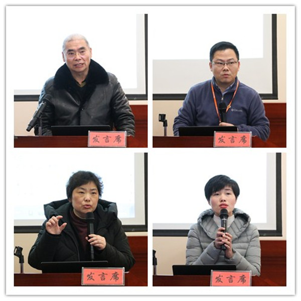 许国强(左上)、周朝辉(右上)、周东佼(左下)、张妍妍(右下)作制度宣贯解读