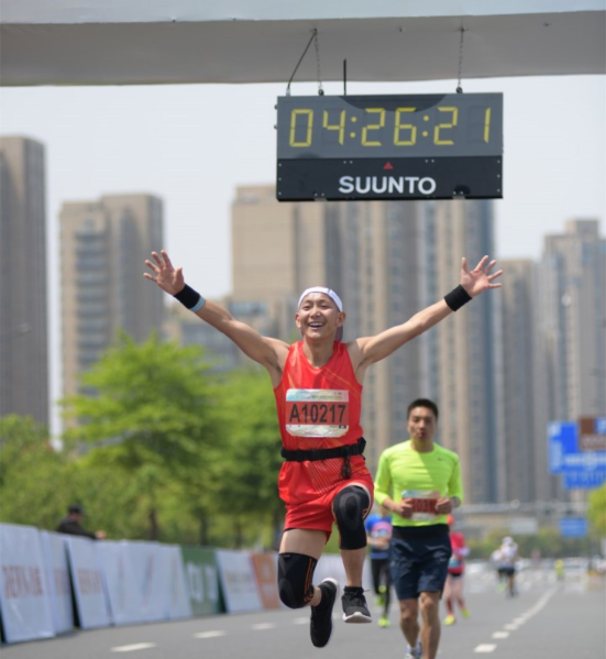 来自特种电缆厂的65成圈机副手冷树超是此次比赛远东跑团中唯一一位全马运动员,活力、拼搏成为他最亮眼的标签,镜头感十足的他最终以4:26:15的成绩完成了42公里的全程马拉松。