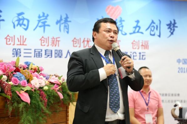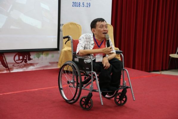 代国宏表示,身障人需要创业,不仅是因为不想成为家里的负担,而且在实现人生价值、实现真正意义上的无障碍生活方面都有十分重要的意义。“我们每个人都需要保持学习的态度,不停学习,不停思考,成为对社会有用的人。”人因为梦想而伟大,我们为自己的梦想奋斗,为别人的梦想努力,为社会的发展奉献自己,代国宏对未来充满理想:“勇敢是幸福的!幸福是奋斗出来的!” 混障综艺团团长刘铭用自己的故事向现场来宾传递了乐观向上的生活态度,坐在轮椅上的他身上看不到一点悲观的影子,“希望两岸每个人对身障人树立起正确的观念,积极面对生活。”自身作为身障人的林进兴不仅用乐观改变了自己的生活,更成立了脊髓损伤潜能发展中心,为身障人们提供基本生活技能培训,为他们筑起生活的信心及希望。